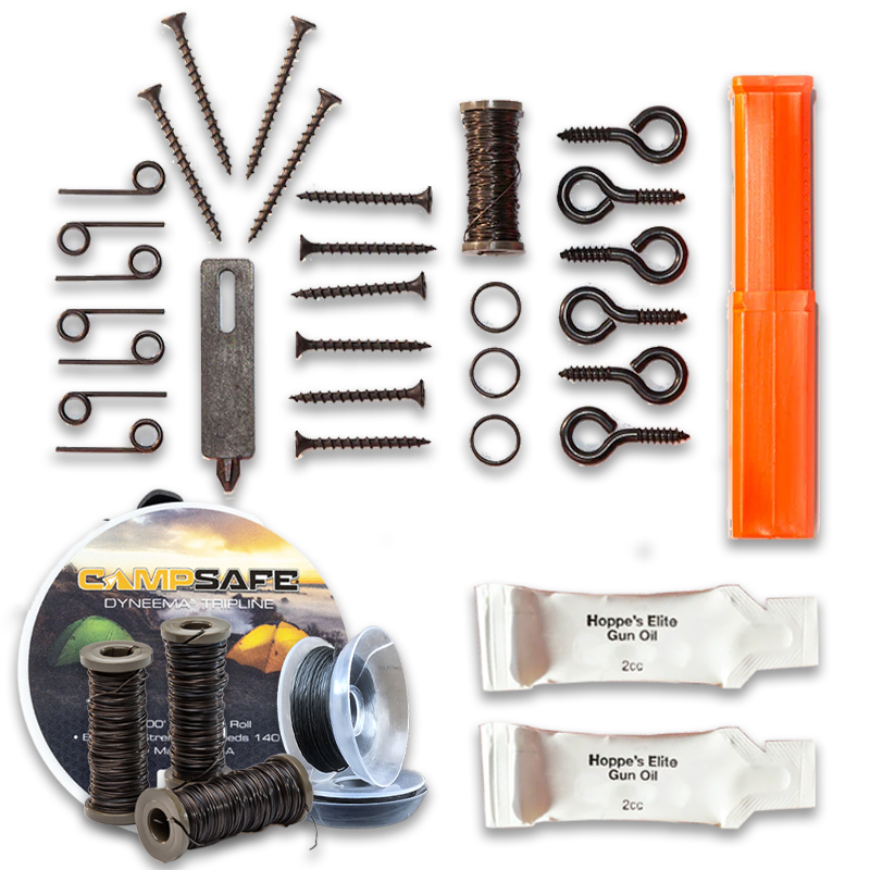 Our trip alarm is a sound alarm device that uses blanks to create the noise. It's a affordable and great option for sitting outside for long periods without having to worry about electronics getting wet or running out of battery power.